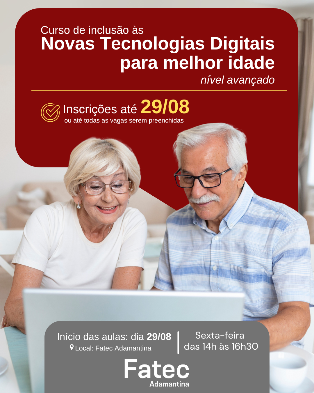 Se você tem 60 anos ou mais e quer aprofundar seus conhecimentos em tecnologia, a Faculdade de Tecnologia (Fatec) de Adamantina tem a oportunidade perfeita para você. Estão abertas as inscrições gratuitas para o projeto de extensão “Inclusão às Novas Tecnologias Digitais: Nível Avançado”.