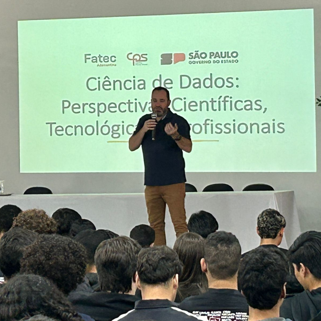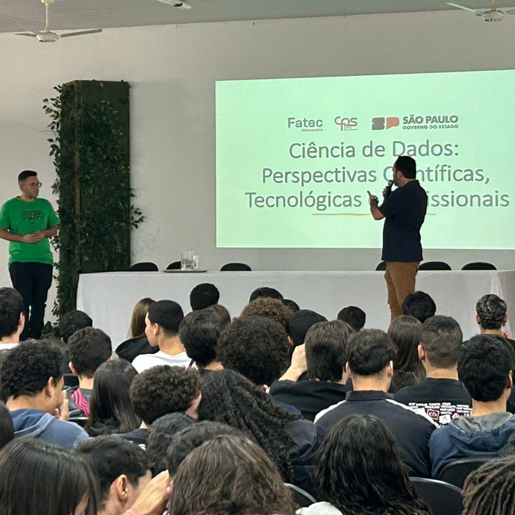 Na manhã desta segunda-feira, 25, os alunos dos ensinos Médio e Técnico da Escola Técnica (Etec) Prof. Eudécio Luiz Vicente tiveram um encontro com o futuro durante a Semana Temática de Tecnologia. Representando a Faculdade de Tecnologia (Fatec) de Adamantina, o Prof. Me. Luiz Gustavo Teixeira e o aluno Guilherme Saderio Polino estiveram presentes para apresentar o curso superior de Tecnologia em Ciência de Dados — uma área que vem em constante crescimento no mercado.