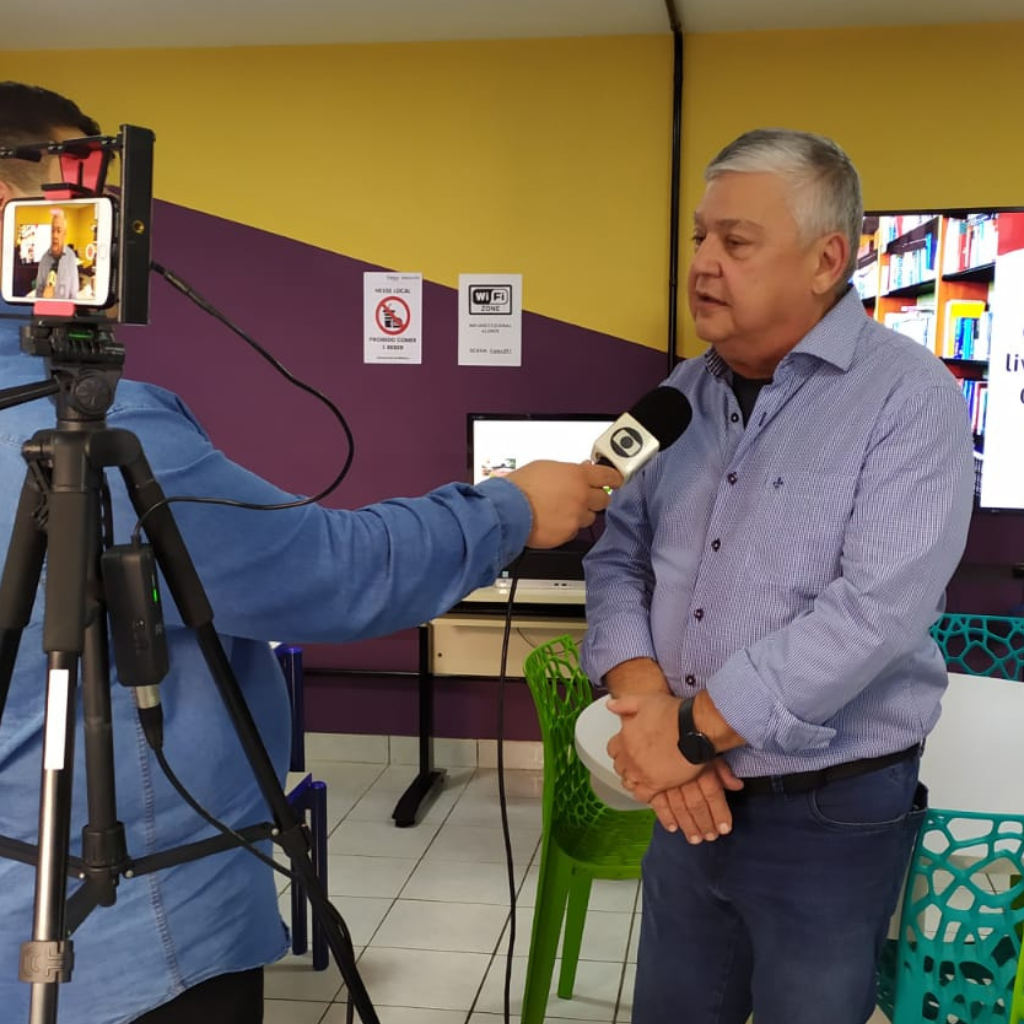 O diretor da Fatec Adamantina, Prof. Me. José Eduardo Rossilho Figueiredo, o bibliotecário Bruno Diego Peron Saraiva e alunos que utilizam o espaço foram entrevistados pelo repórter Renato Campanari.